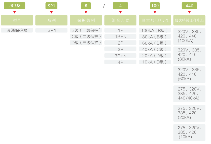 按最大放電電流Imax(8/20us)分為:10kA、20kA、40kA、60kA、80kA、100kA;